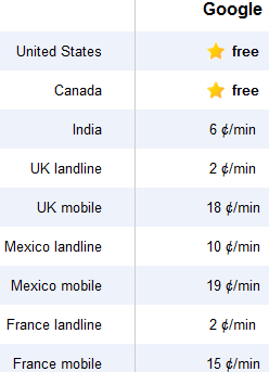 Nearly every country on Google’s list costs less than fifty cents per minute.