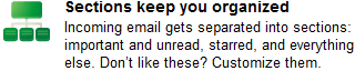 The emails are then broken into sections depending on what you do with them. Emails you want to re-read later, add a start and they will appear in a special section beneath unread, important emails. You can create your own sections if the pre-installed ones do not suit your needs.