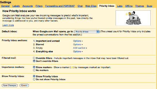 Over the next week, a new tab will appear in our Gmail settings. Between Web Clips and Labs, the tab will be called Priority Inbox. Clicking this tab allows Gmail users to decide when and how to use Priority Inbox.